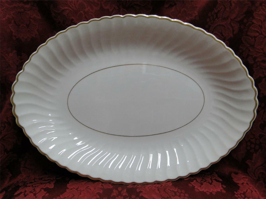 Syracuse Standish, Swirled, Gold Trim: Oval Serving Platter, 11 3/4"