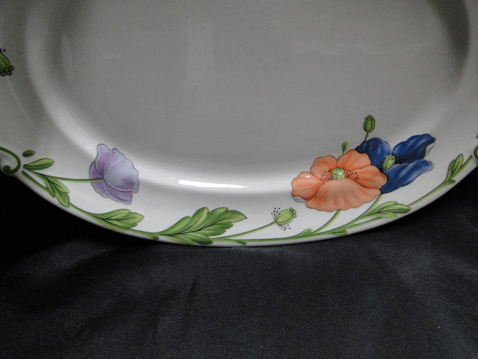Villeroy & Boch Amapola, Blue & Orange Flowers: Oval Serving Platter, 17"